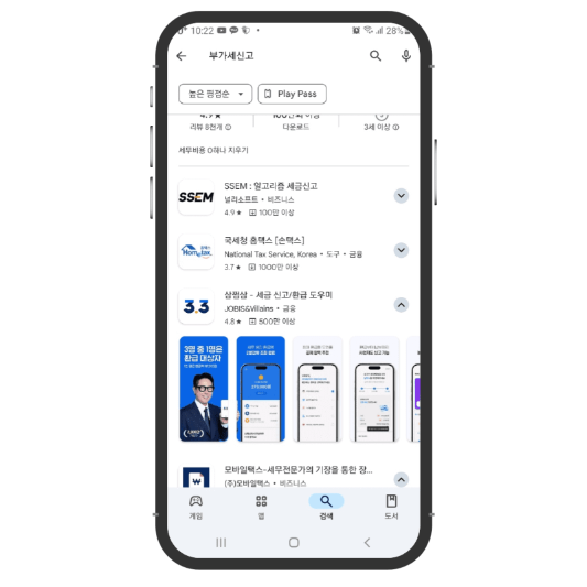 부가세를 신고해 주는 세금 대행어플이 있습니다. 세무사에게 신고대행을 맡기는 것보다 비용이 저렴하며 일반들이 알기 어려운 절세 팁이나 혜택등도 자세히 알려줍니다. 또한 공인인증서로 로그인을 하면 홈택스에서 전자자료를 자동으로 수집해 주고 손쉽게 정보를 입력할 수 있어 편리합니다. 홈택스에서 직접 신고하는 어려움이 있거나 매출이 적다면 이러한 어플을 이용하는 것을 추천드립니다.